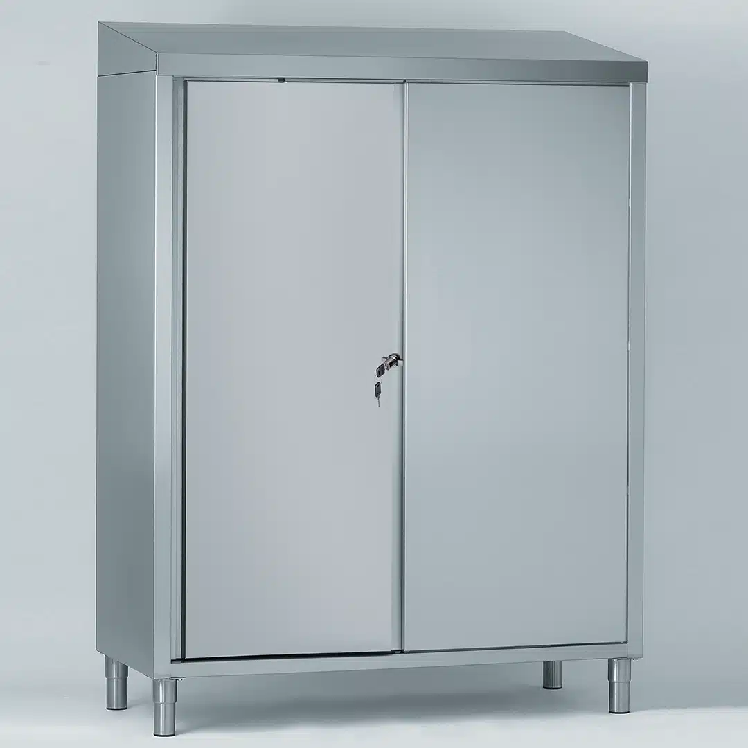 Portes à poignée pliée avec bord écrasé, utilisable sur toute la hauteur de l’armoire.