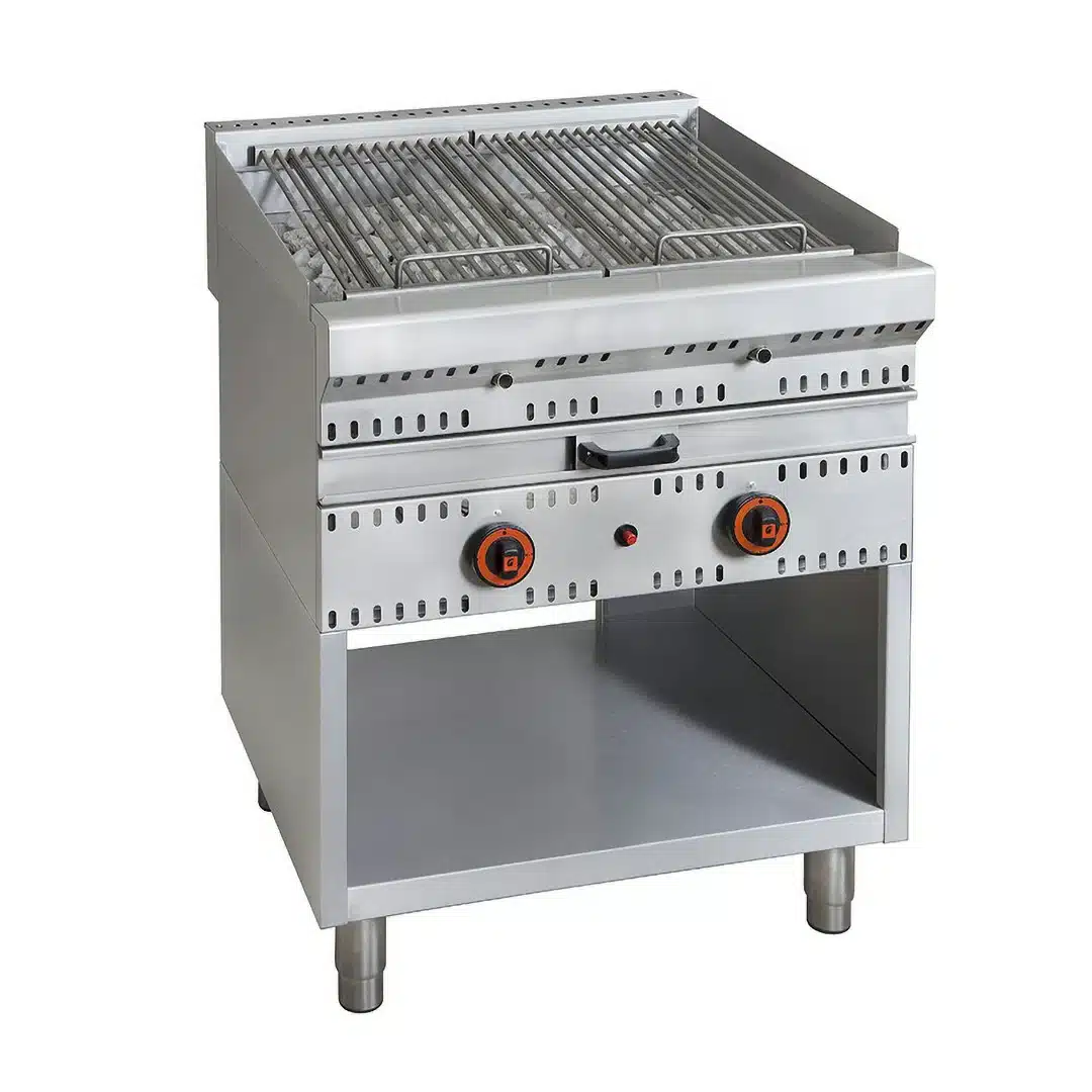Le Grill gaz en pierre de lave GPV L 700 mm est conçu pour les professionnels de la restauration à la recherche d’une cuisson naturelle, homogène et sans résidus. Sa structure en acier inoxydable garantit robustesse, hygiène et durabilité.