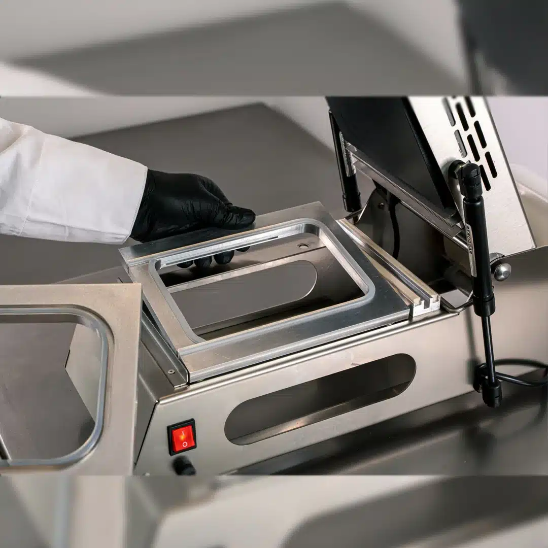 Machine operculeuse barquette, assure un scellage rapide et efficace, parfait pour les petites productions, les emballages individuels ou les prototypes. Dimensions : L 290 x P 620 x H 540 mm