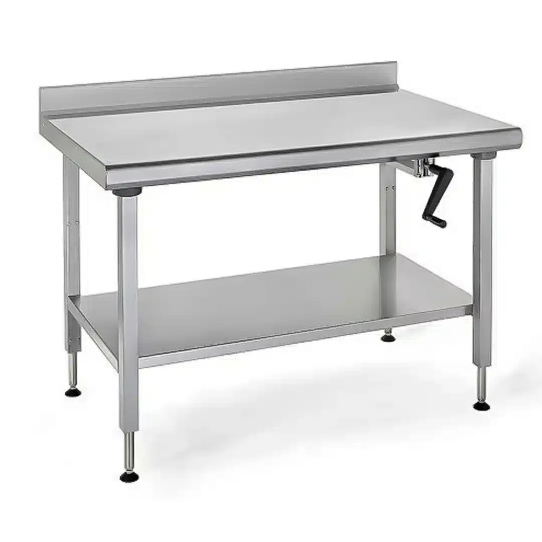 Plan de travail à hauteur réglable en acier inoxydable.