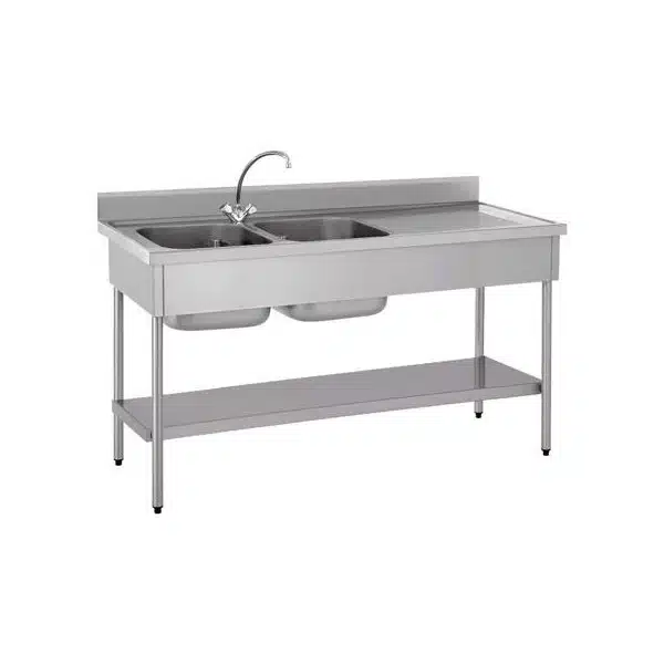 Bandeau avant et dosseret rayonnés semblables à ceux des tables et meubles inox.